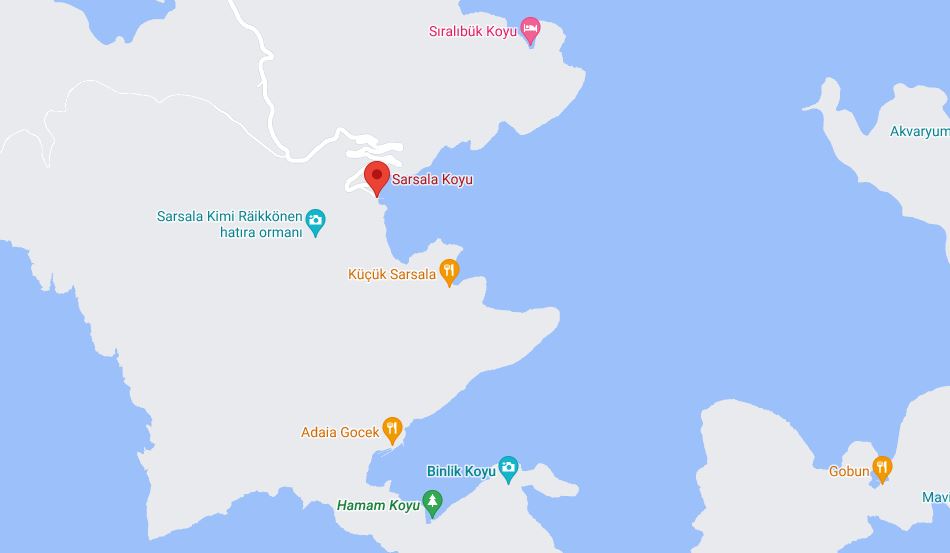 Sarsala Koyu’nun güney kıyısı ortalarında, küçük şirin, korunaklı adeta özel bir koy vardır. Buraya “Küçük Sarsala Koyu” denir. Çam ağaçları ile kaplı bu şirin koyun bitiminde, 30 teknenin tonozla bağlanabildiği bir iskele bulunur. İskele, arkasındaki restorana aittir. Farklı bir atmosferi vardır.